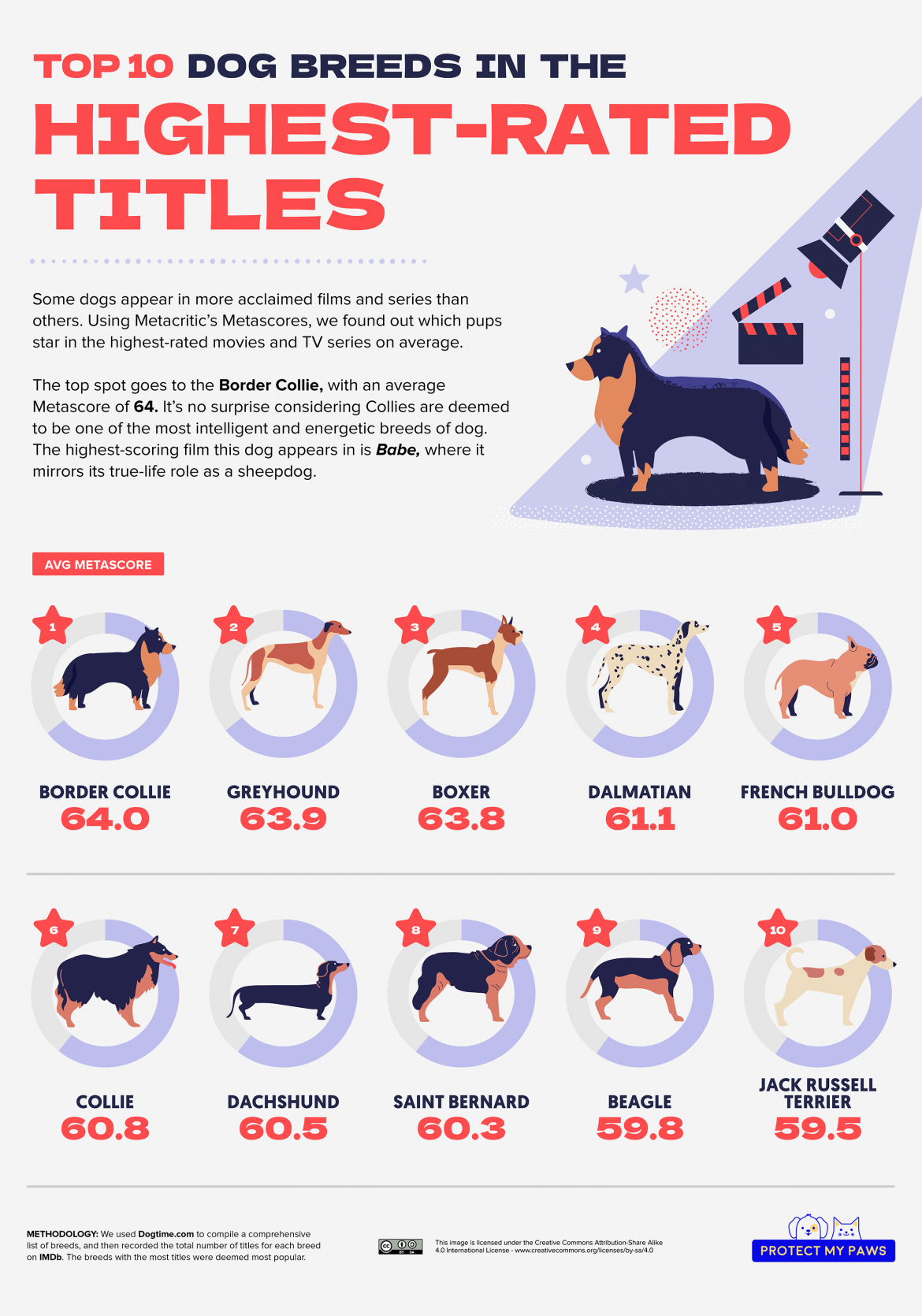 Canines have all the time been capable of push our emotional buttons and a great canine actor can actually make or break a film. Shield My Paws analyzed information from IMDb information to find out the most-filmed canine breeds in motion pictures and TV reveals from the previous century. Take a look at their infographic under!
